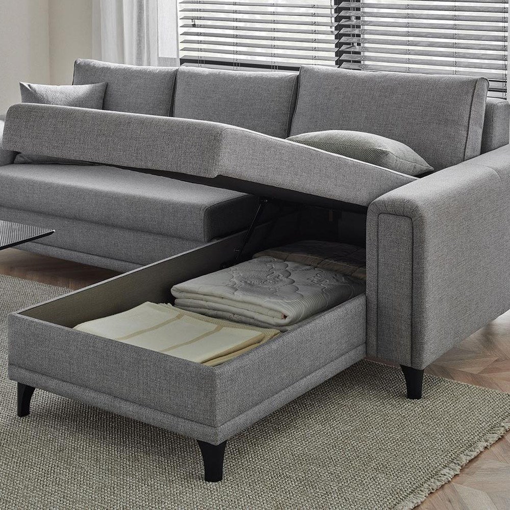 УГЛОВОЙ КОМПЛЕКТ МАРИС, который можно трансформировать в большую кровать, предлагает дополнительное место для хранения вещей благодаря функции хранения в его конструкции.