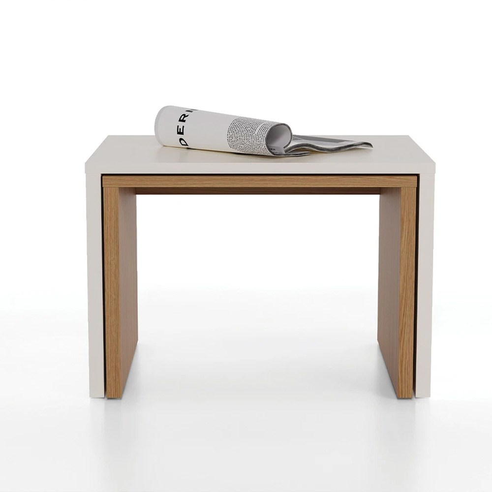 Набор из двух столиков MARSANA, воплощающий в своих линиях лаконичную эстетику стиля кантри, наполняет жилые пространства теплотой благодаря комбинации цветов «дуб» и «крем» и легко сочетается с различными стилями декора.