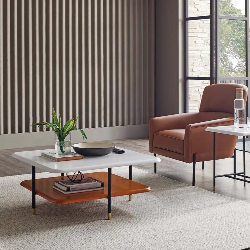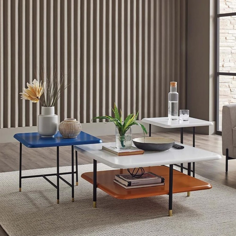 ОписаниеБлагодаря комбинации ярких и стильных расцветок, которая удачно сочетается с геометрией современного дизайна, кофейный столик Dante создает особую, изысканную атмосферу в гостиной. Черные металлические ножки с золотистыми подпятниками - это эксклюзивный дизайн от Enza. На выбор предлагается 3 варианта конфигурации данной модели кофейного столика, а также 2-х ярусный центральный столик. Кофейный столик Dante - это эстетичность и современный дизайн, элегантность и оригинальный стиль, это изящный штрих к интерьеру вашей гостиной.