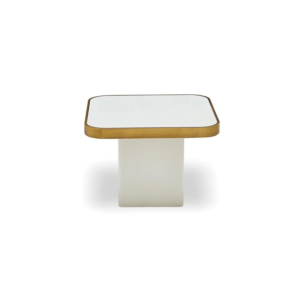 Он придает стильный вид жилым помещениям, сочетая столешницу с деталями золотого цвета.