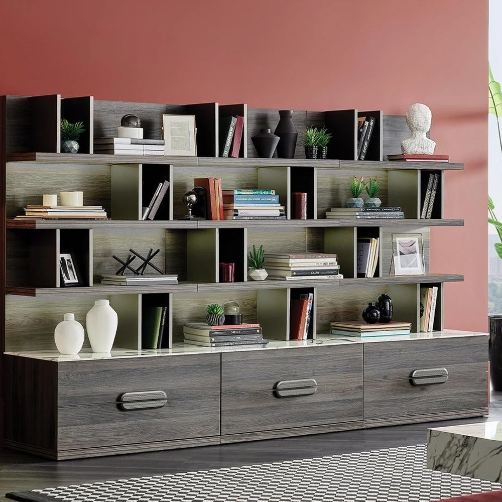 "Giorno TV Unit", создает дополнительные места для хранения вещей с открытыми и закрытыми стеллажами, которые дополняют его универсальный модульный дизайн, добавляет элегантную и современную атмосферу в жилые помещения.