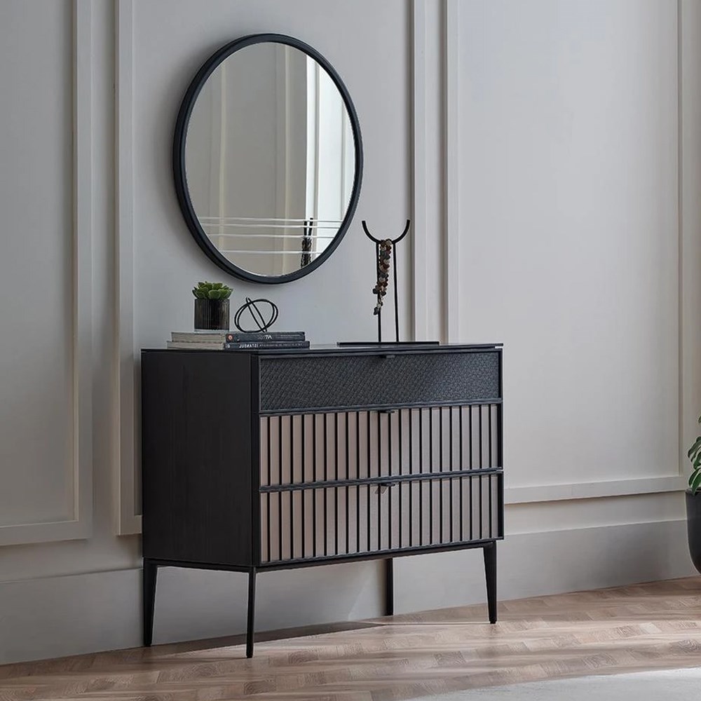 Благодаря своей матовой черной раме зеркало RIGA привносит в жилые помещения неповторимую атмосферу благодаря своей круглой форме.