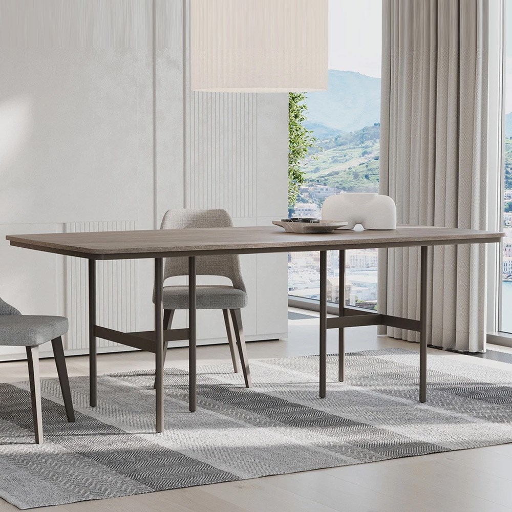Стол VARENA с фиксированной конструкцией приносит тепло дерева в вашу столовую, сочетая дубовый и бежевый цвета для создания элегантного и простого стиля.