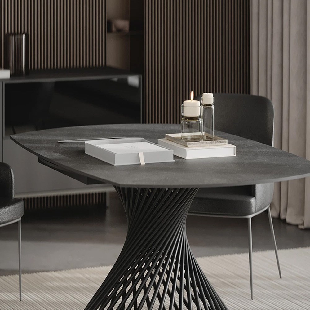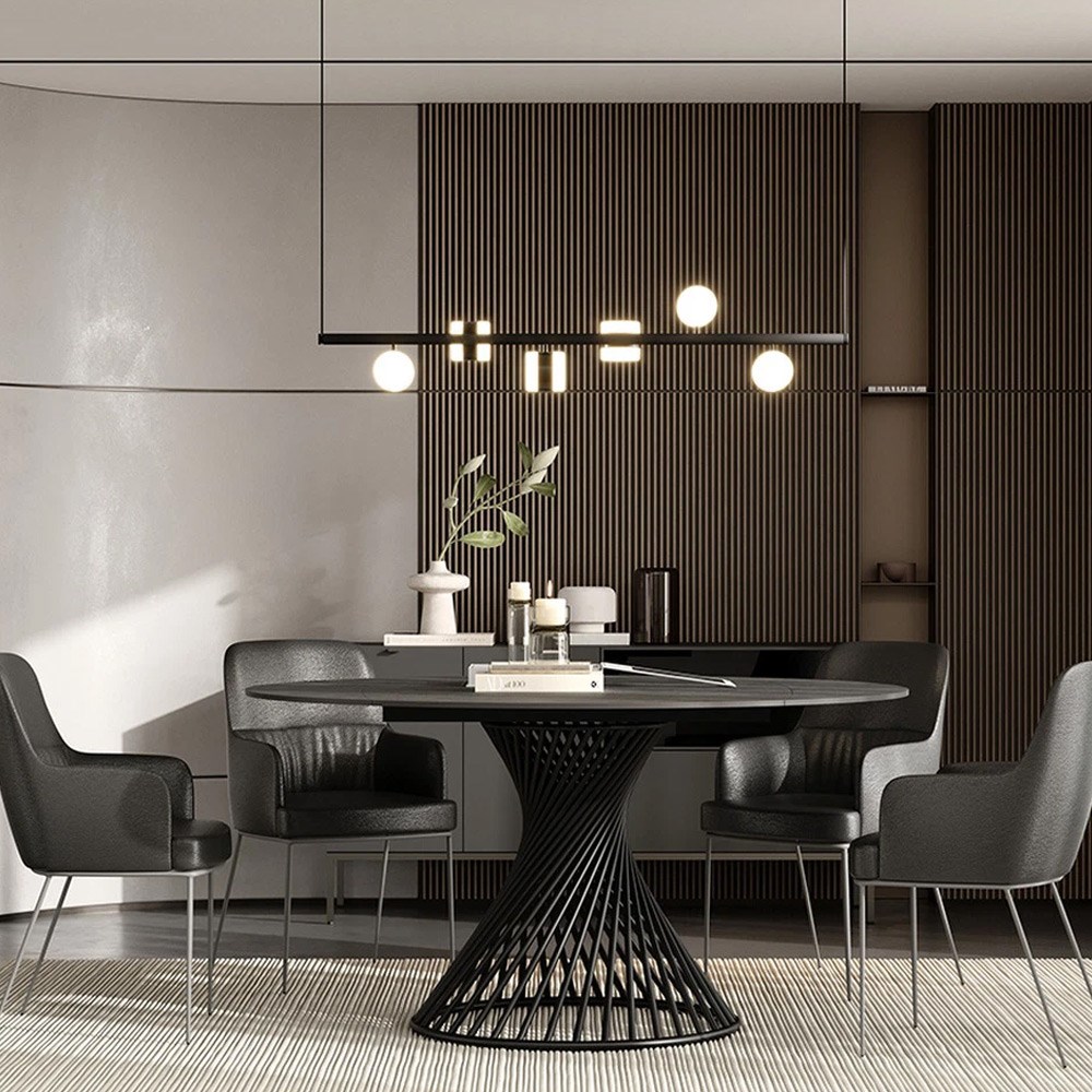 Он позволяет адаптировать интерьер под настроение, просто повернув столешницу, выбирая между сдержанной гладкой поверхностью или роскошным мраморным узором.