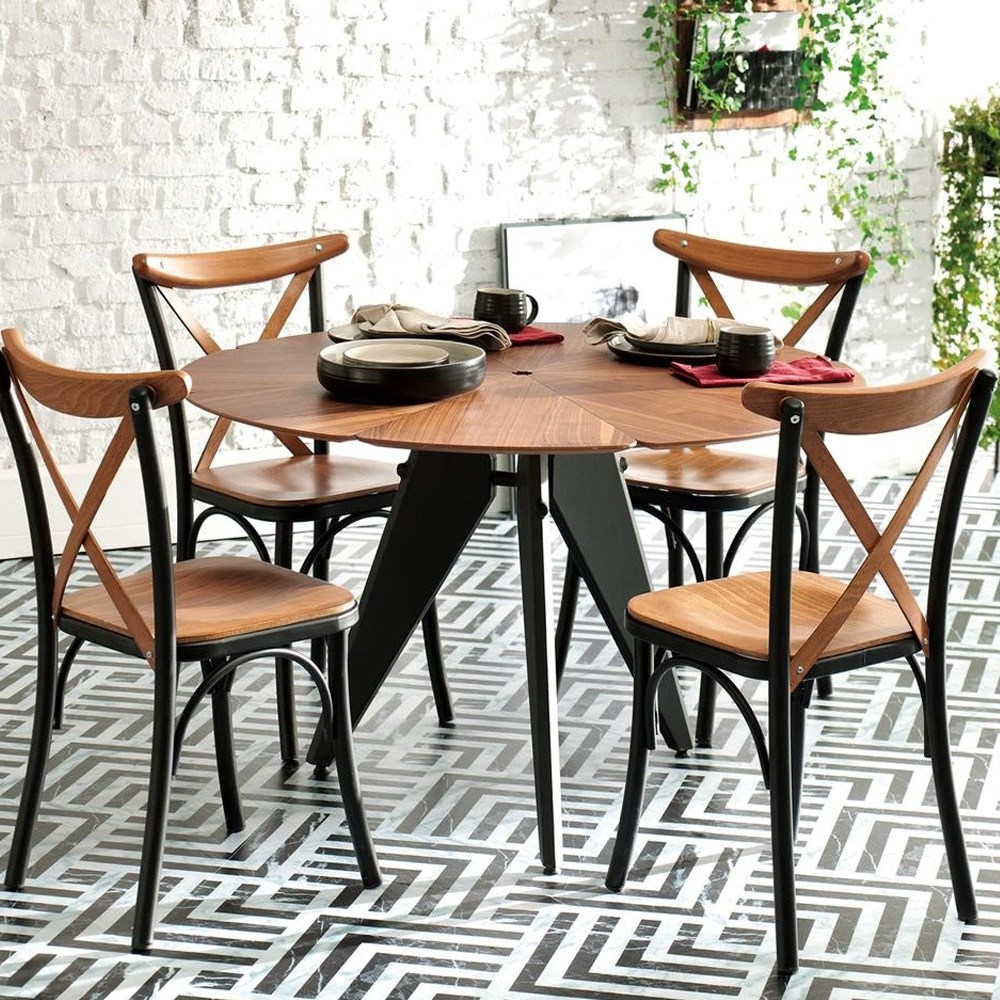 СТУЛ VENY, где встречаются металл и муаровое дерево, поддерживает позвоночник с помощью изогнутой верхней части и диагональных средних реек, используемых в спинке, обеспечивая комфорт при кратковременном и длительном использовании.