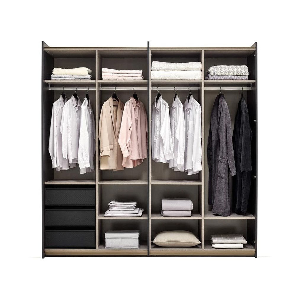 ШКАФ-КУПЕ привносящий в спальню утонченный и изысканный стиль, помимо стильного дизайна, отвечает потребностям благодаря функции гибридного гардероба и функциональным особенностям, состоящим из 3 ящиков.