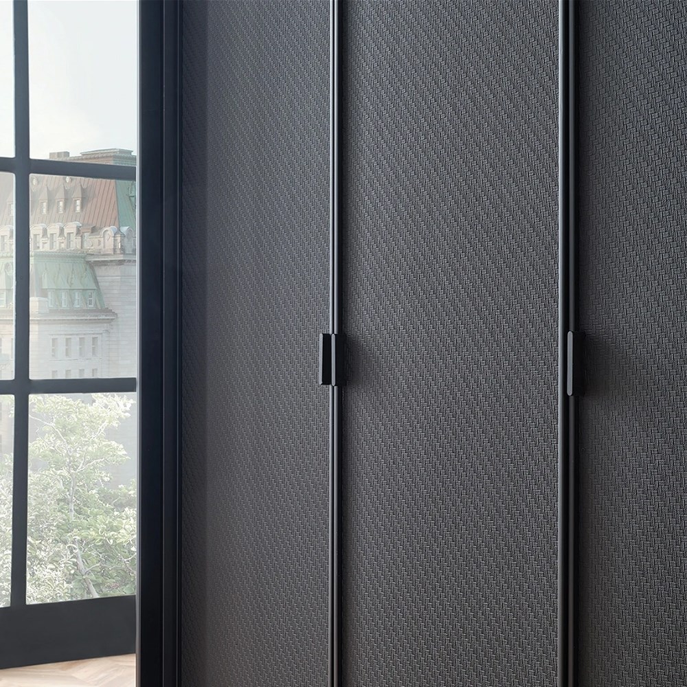Узор из черной кожи и детали дизайна ручек из матового черного металла, которые сочетаются с классическим и современным стилями, поддерживаются эксклюзивными материалами.