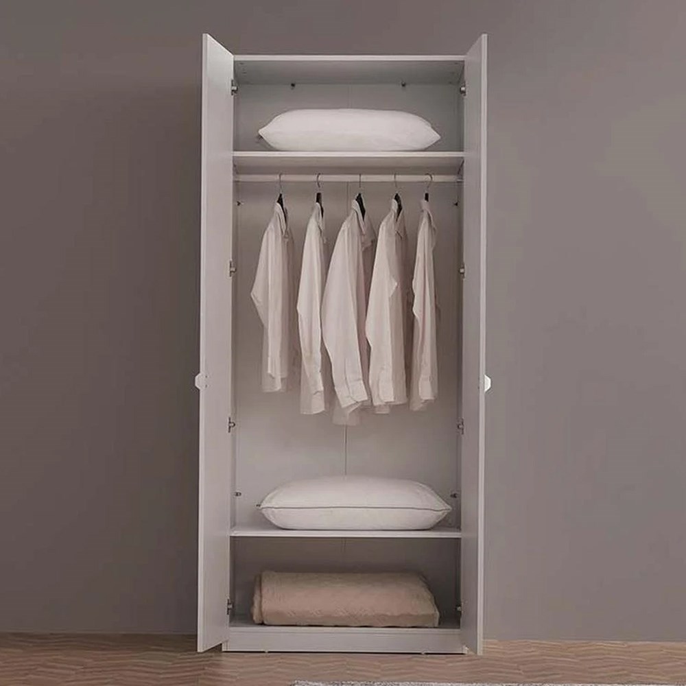 2-ДВЕРНЫЙ ШКАФ POLKA, отражающий простоту белого цвета, поможет вам создать современный стиль в вашей спальне.