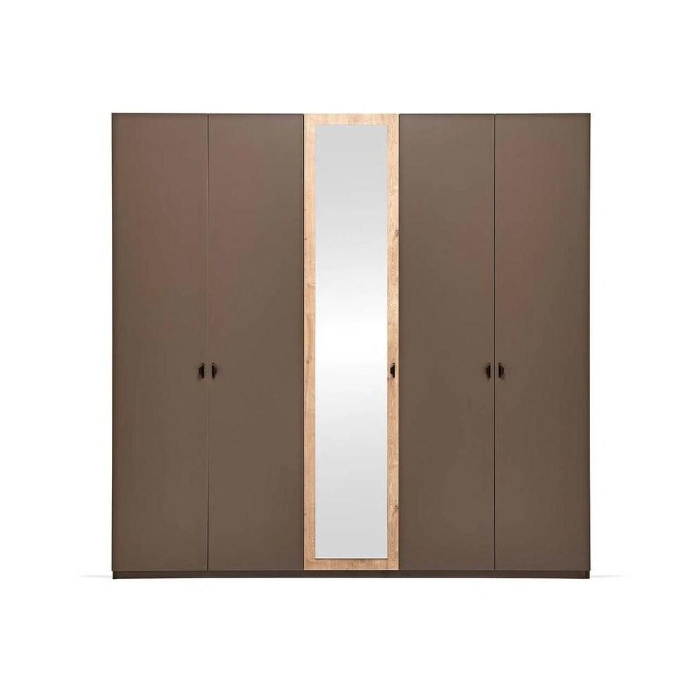 5-ДВЕРНЫЙ ШКАФ POLKA привносит в оформление вашей спальни простую элегантность, элегантность которой скрыта в функциональных деталях, белых металлических ручках и натуральном зеркале.