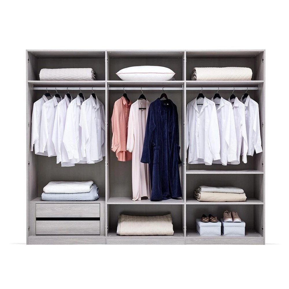 Создает светлую и просторную атмосферу благодаря сочетанию цветов светлого дуба и светло-бежевого, он прекрасно адаптируется к различным потребностям использования благодаря своей модульной конструкции.