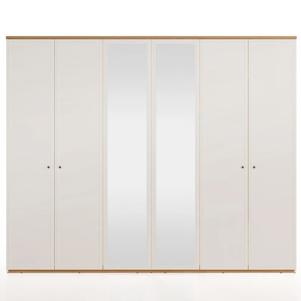 Шкаф MARSANA с 6 дверцами привносит современную атмосферу в любое помещение благодаря деталям из деревянного профиля и металлическим ручкам цвета норки.