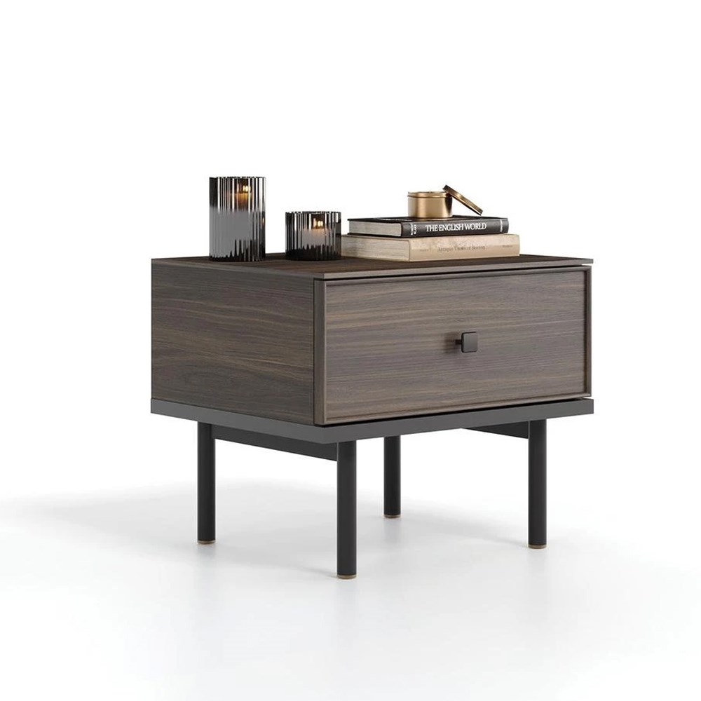 Прикроватная тумба PARMA, сочетающая в себе уникальное сочетание черного и темного ореха, демонстрирует современную эстетику.