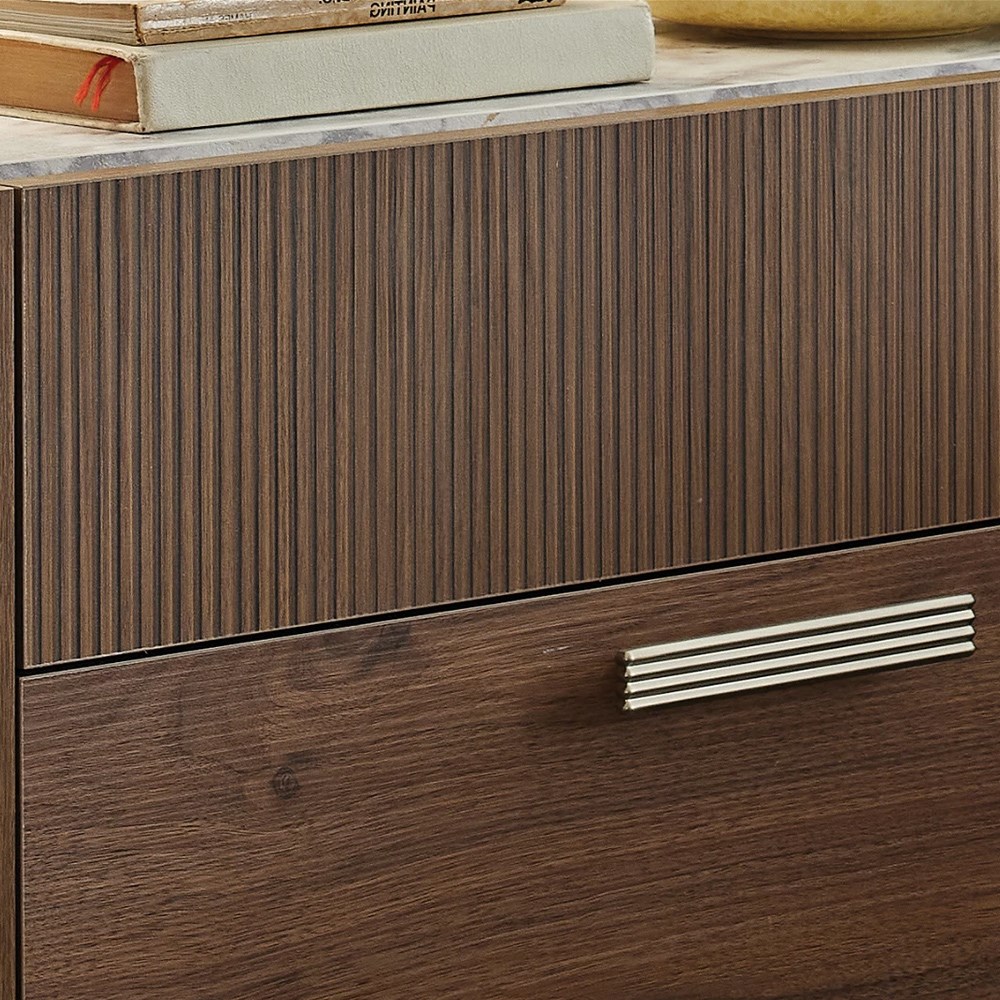 Несмотря на то, что он отличается своим линейным декором с глубокой поверхностью и металлическими ручками и ножками цвета матовой нержавеющей стали, он предлагает аккуратную и стильную установку благодаря функции внутреннего разделения ящика.